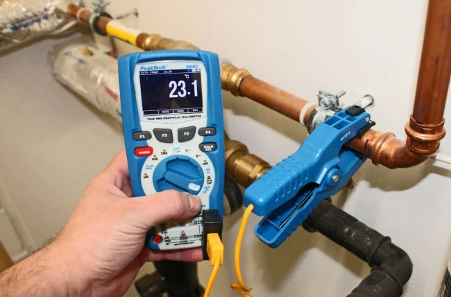 Для измерения температуры в системах отопления и кондиционирования воздуха, а также для многих других измерений температуры необходимы такого рода датчики температуры, которые можно подключить с помощью зажимных клещей непосредственно к измеряемой системе.