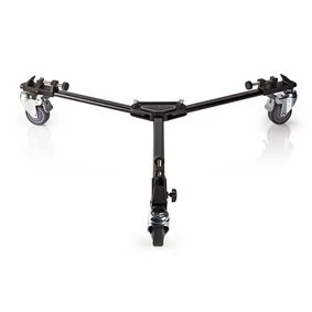 Dolly for photo or video tripods to create maximum movement flexibility. It features separately lockable wheels and is suitable for most tripods.