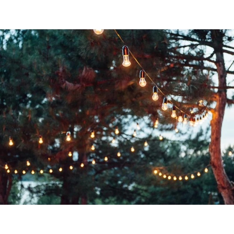 + Патрон E27: Световая гирлянда оснащена 50 патронами E27 и может использоваться как с традиционными лампами накаливания, так и со светодиодными лампами.
