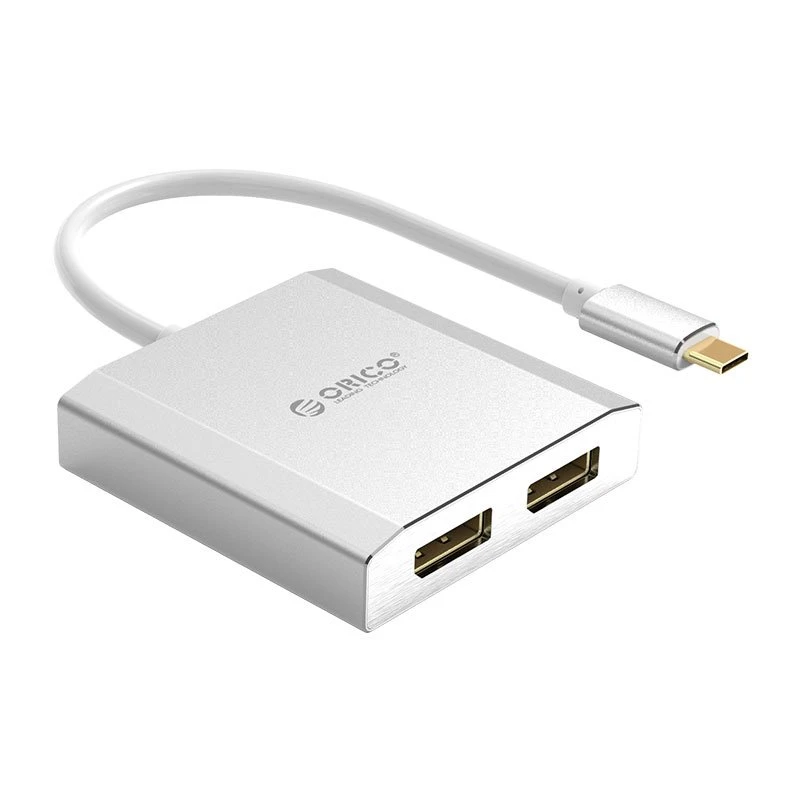 Orico Type-C -> Displayport adapter. Cable length 15cm. 2 DP outputs. 4K@60Hz. Connect, for example, your Type-C laptop to 2 DP monitors.