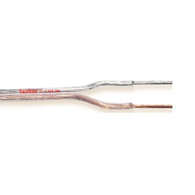 The conductors are one in red copper and the other in tinned copper for the polarization.