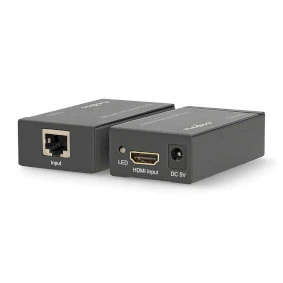 With this Full HD HDMI over Ethernet extender it is possible to transfer a TV signal to another HDMI screen in another room by using a network cable. You can bridge a distance of up to 60 meters by using a Cat5e or Cat6 cable. A network cable fits easily through PVC pipes and a network signal is reliable, even at longer lengths which is not the case when using long HDMI cables.