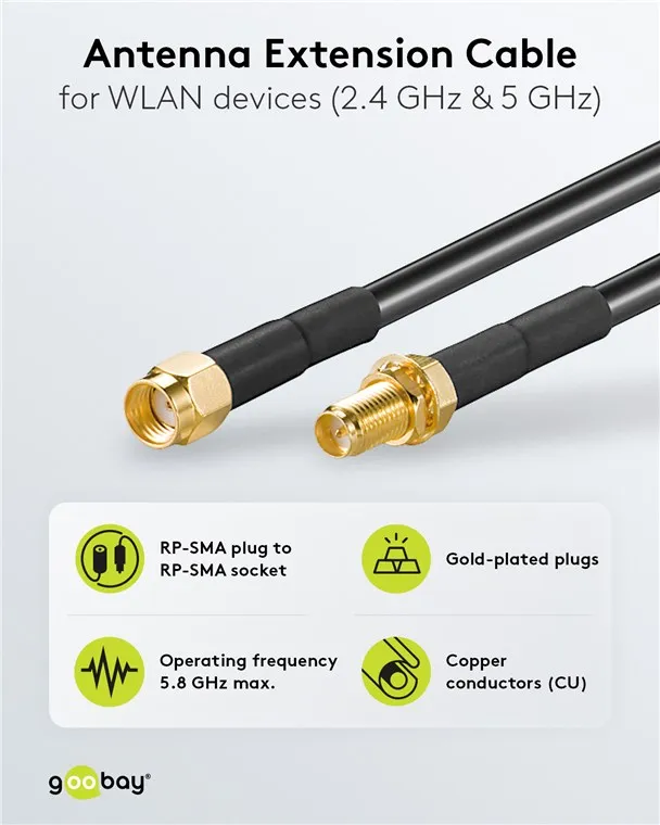 Ideal for all common Wi-Fi routers and Wi-Fi antennas with RP-SMA connectors