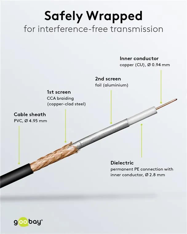 Our antenna cables transmit signals in top quality at high speed, always guaranteeing a stable connection. High-quality inner conductors, robust cable sheathing and precisely fitting plugs distinguish our portfolio of connection cables and plugs. Goobay always provides the perfect products for your network needs. Simply. All. You need!