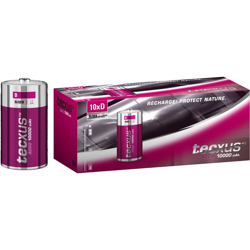 tecxus D batteries can be recharged up to 1,000 times, which makes them highly eco-friendly