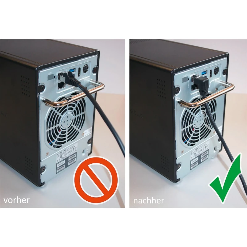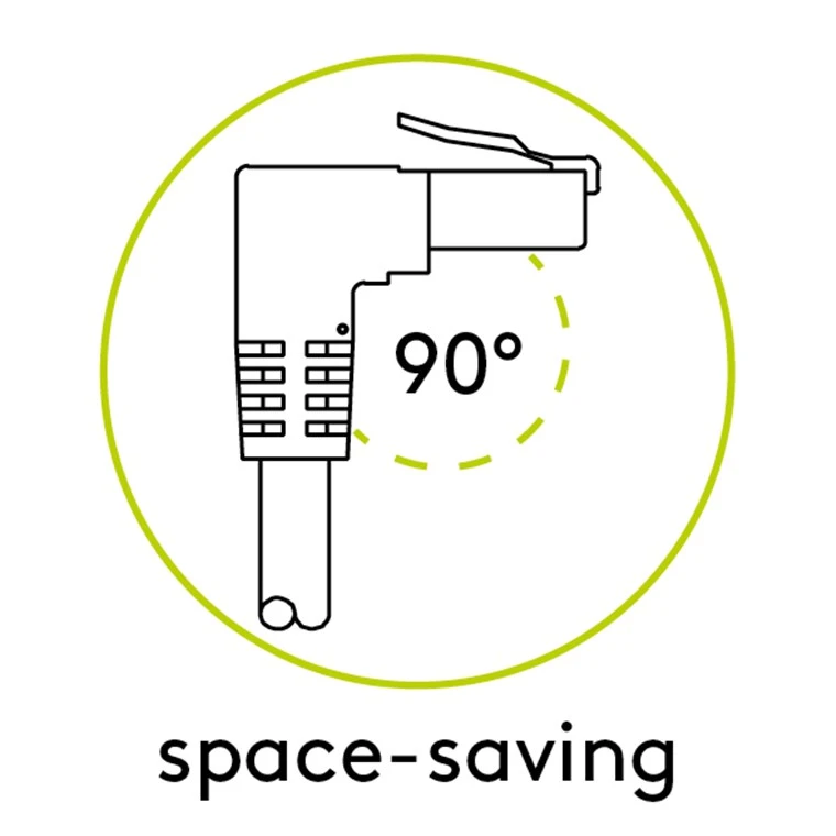 The CAT 5e network cable with a 90° right angle RJ45 connector is an ideal solution in confined spaces.