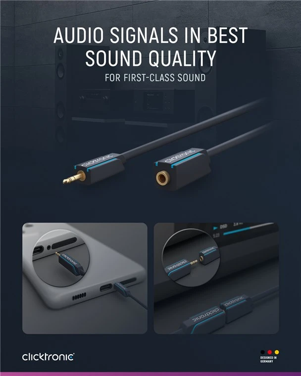 High-quality, gold-plated contacts and pure copper conductors transmit audio signals in maximum sound quality for a perfect sound experience.
