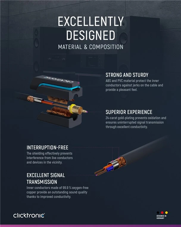 Clicktronic audio cable with 2-fold shielding of aluminium foil and copper braiding for brilliant signal quality