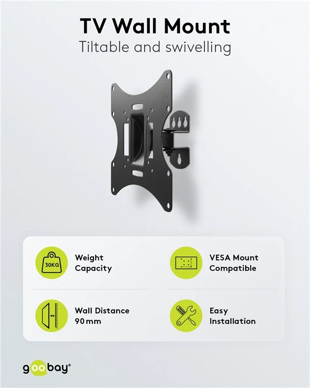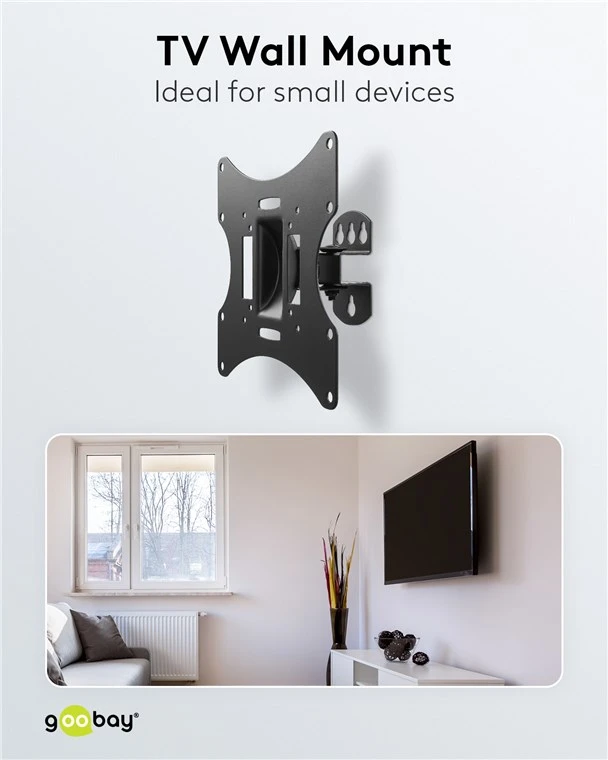 With its swivel arm and tilting plate, the wall mount offers maximum flexibility when positioning the TV set.