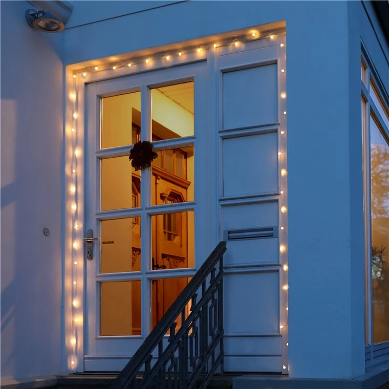 The fairy lights can be used as pleasantly warm lighting in the living area, e.g. as decoration for plants, furniture, curtains and on walls.