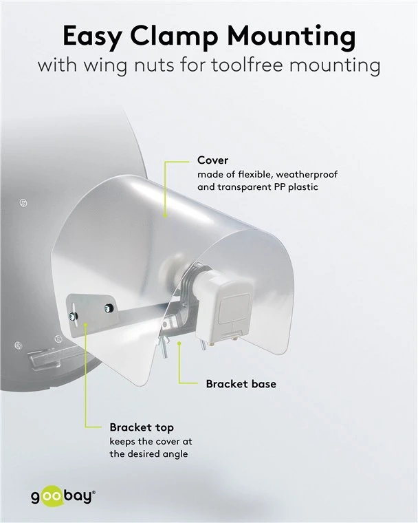 Quick and easy installation: The protective cover is supplied with upper bracket, lower bracket and mounting material