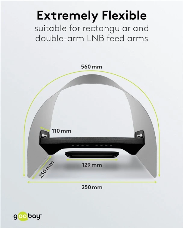 Compatible with rectangular and two-armed LNB feed arms as well as with all common satellite dishes, digital LNBs, multi-switches and DiSEqC switches