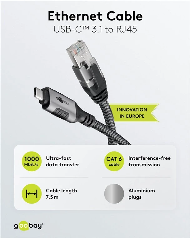 The technology upgrade to simplify your life: Our innovative adapter cable is the compact Ethernet solution for all USB-C™ devices without their own RJ45 port.