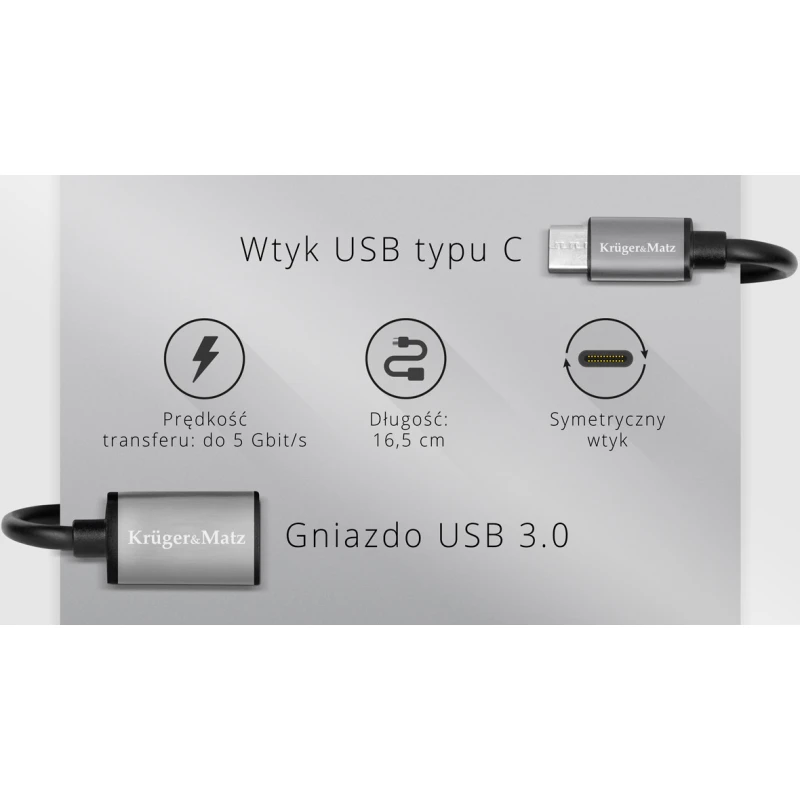 Попробуйте OTG-кабель Kruger&Matz из серии Basic сегодня и убедитесь, как легко можно повысить удобство использования ваших мобильных устройств! Кабель оснащен разъемом USB Type-C (папа) с одной стороны и разъемом USB (мама) с другой. Это решение позволит вам, среди прочего, подключить флеш-накопитель к ноутбуку, который не оснащен стандартным USB-портом. Функциональность