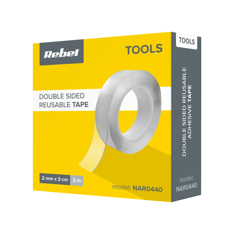 Многоразовая двусторонняя лента Rebel Многоразовая двусторонняя лента Rebel – это универсальный продукт, который найдет применение в каждом доме. Лента может быть приклеена к большинству гладких поверхностей, включая плитку и металл. Благодаря своей универсальности, она обязательно пригодится в ванной, кухне, гостиной, спальне, офисе и даже в автомобиле. Лента изготовлена из прозрачного PU геля, поэтому вы даже не заметите ее на стеклянных поверхностях.