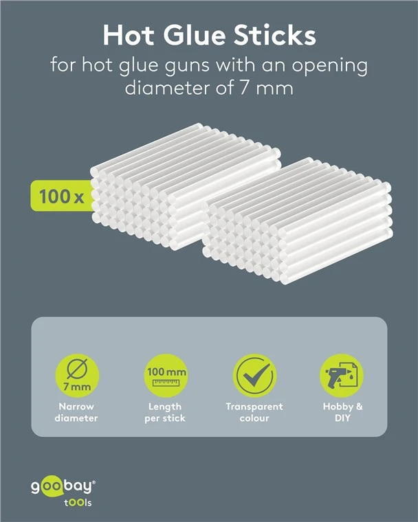 Glue sticks for all hot glue guns with a 7 mm opening, perfect for model making, all craft and DIY projects, decorating or repairing