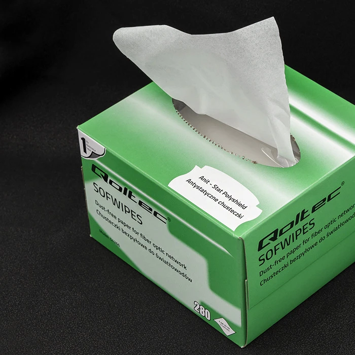 Dust-free wipes from Qoltec are your guarantee of cleanliness and performance for your fibre optic network. They are made of double-sided cleaning cloth, which does not scratch the glass surface to be cleaned, soft and absorbent, does not become mouldy and does not leave dust. They can be used with isopropyl alcohol.