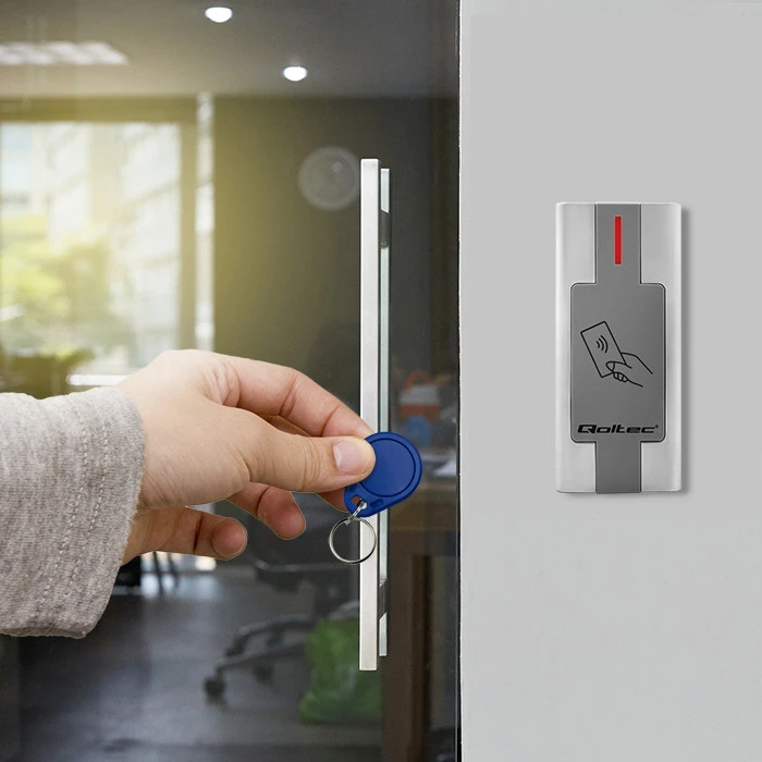 The Qoltec brand proximity reader allows you to program up to 2000 users. The device has a built-in LED diode and a sound signal. The correct operation after reading the card is indicated by the green color of the LED and one sound signal. After 10 unsuccessful access attempts in one minute, the lock will activate and the reader will be automatically locked for a period of 10 minutes.