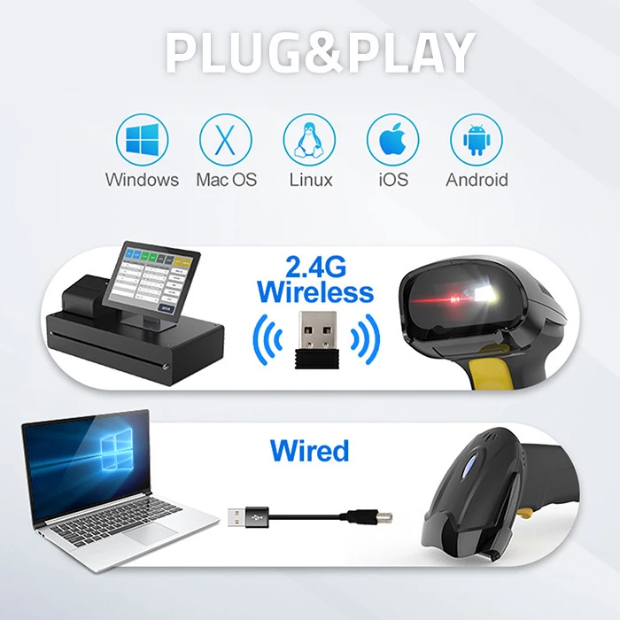 Our scanner is fast, accurate and extremely easy to use. In addition, the scanner is compatible with many devices and standards. Whether you want to scan a 1D or 2D code, our scanner can handle it, simply apply the product - a single click confirms the reading of the information encoded in the code.
