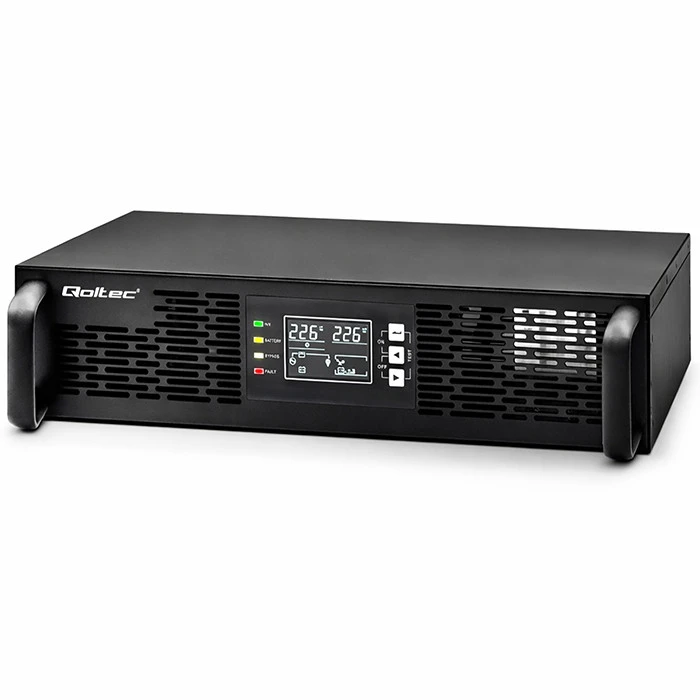 Qoltec RACK UPS units offer stable interference-free pure sine wave power. It's complete protection for your devices, thanks to the double conversion, which first converts the AC of the mains supply to DC and then to AC, ensuring the highest level of power quality and protecting against potential mains disturbances such as voltage drops, power outages, surges and failures.