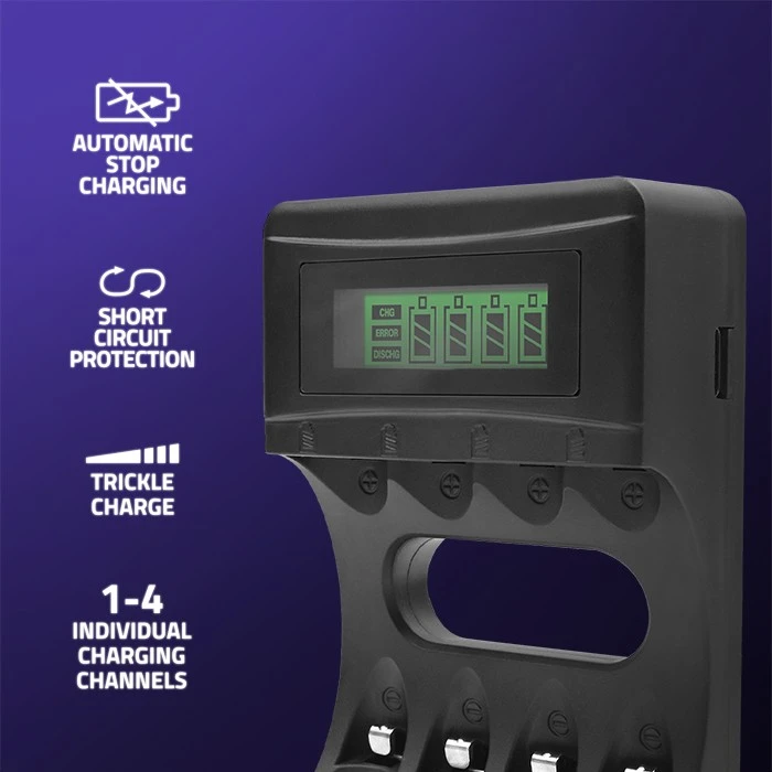 Number of batteries: Charger for up to 4 Rechargeable Batteries