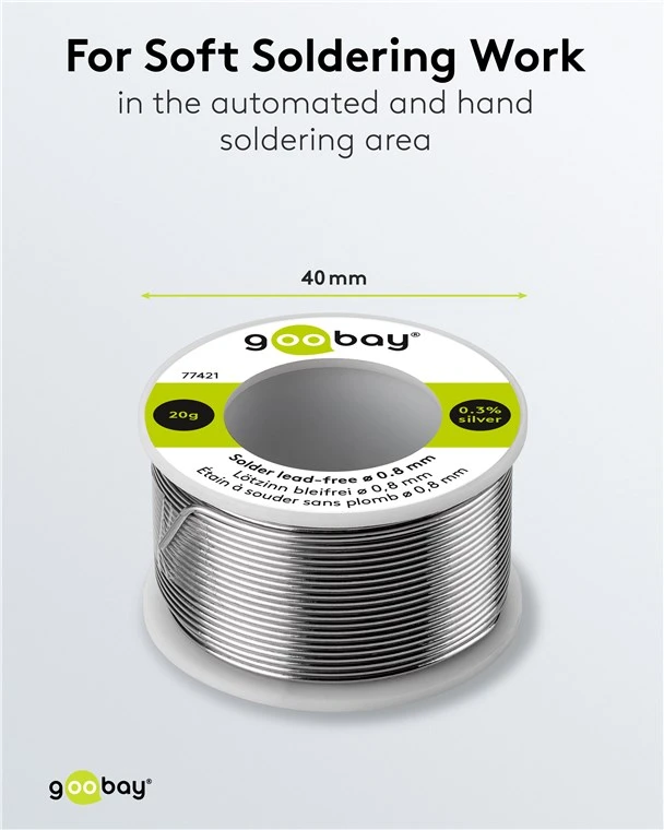 In full flow: With its narrow diameter, the tin is easy to dispense and ideal for precision work, e.g. for soldering electrical components and devices such as printed circuit boards, SMDs, DIPs, cables, televisions, headphones or microphones. The integrated no-clean flux is particularly convenient, as you do not need to remove it from the joint after soldering.