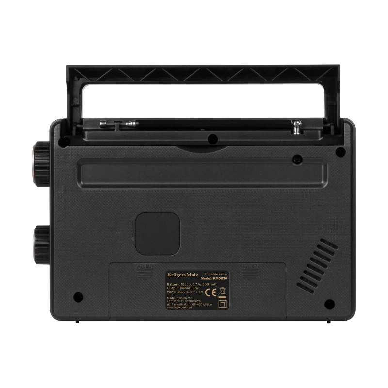 Как и положено портативным радиоприемникам, небольшой радиоприемник KM 822 оснащен складной ручкой, которая облегчает переноску устройства, а также может питаться от сети или батареек. Эта функциональность FM-приемника Kruger&Matz делает его подходящим в качестве небольшого дорожного радиоприемника, который вы легко можете взять с собой на дачу, в сад или даже в поход.