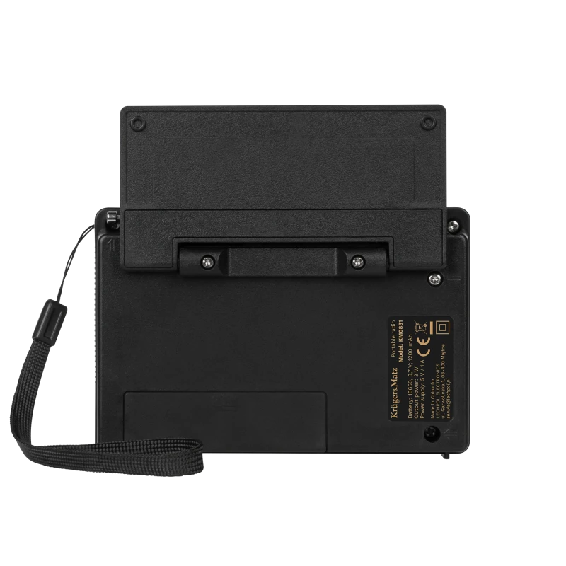 Как и положено портативным радиоприемникам, небольшой радиоприемник KM 822 оснащен складной ручкой, которая облегчает переноску устройства, а также может питаться от сети или батареек. Эта функциональность FM-приемника Kruger&Matz делает его подходящим в качестве небольшого дорожного радиоприемника, который вы легко можете взять с собой на дачу, в сад или даже в поход.