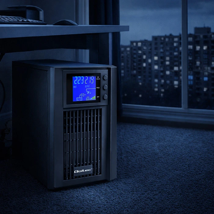 Qoltec UPS power supplies provide stable, interference-free, pure sine wave power. The pure sine wave output guarantees safe and stable power supply for computers, servers, network devices and electronic equipment. In the event of a power failure, the UPS quickly switches to battery mode, ensuring continuity of operation and protection against the effects of events such as voltage drops, short-term power failures or network parameter fluctuations.
