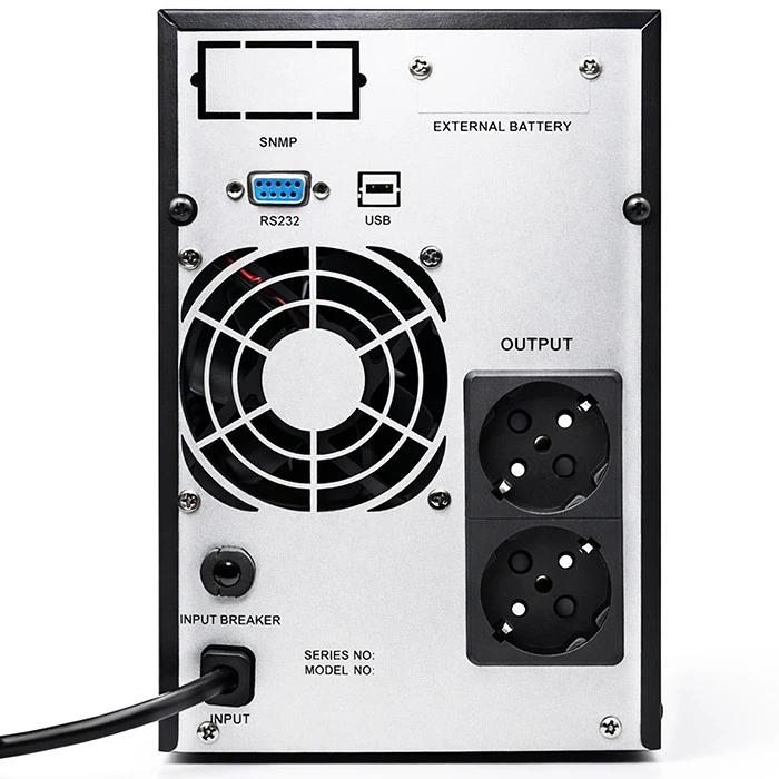 An online UPS power supply has a voltage that is constantly converted. In the event of an unexpected drop in mains voltage, the power supply keeps the connected device running thanks to built-in batteries that are constantly charged. Therefore, mains power is only needed to charge the batteries. Devices permanently connected to the power supply always receive clean, uninterrupted power from the battery, which is why the output voltage of an online UPS will always remain constant, regardless of the input voltage. The backup time for devices, depending on the load, is from a few to several dozen minutes. This is the time needed to save data and safely shut down the equipment.