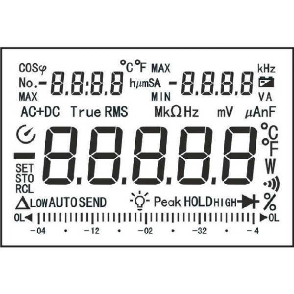 Suur 19999 numbrinäiduga, analoog-tulpdiagrammiga ja taustavalgusega ekraan on mugav ja selgelt loetav. Lisaks kuvatakse eraldi miinimum (MIN) ja maksimum (MAX) näidud.
